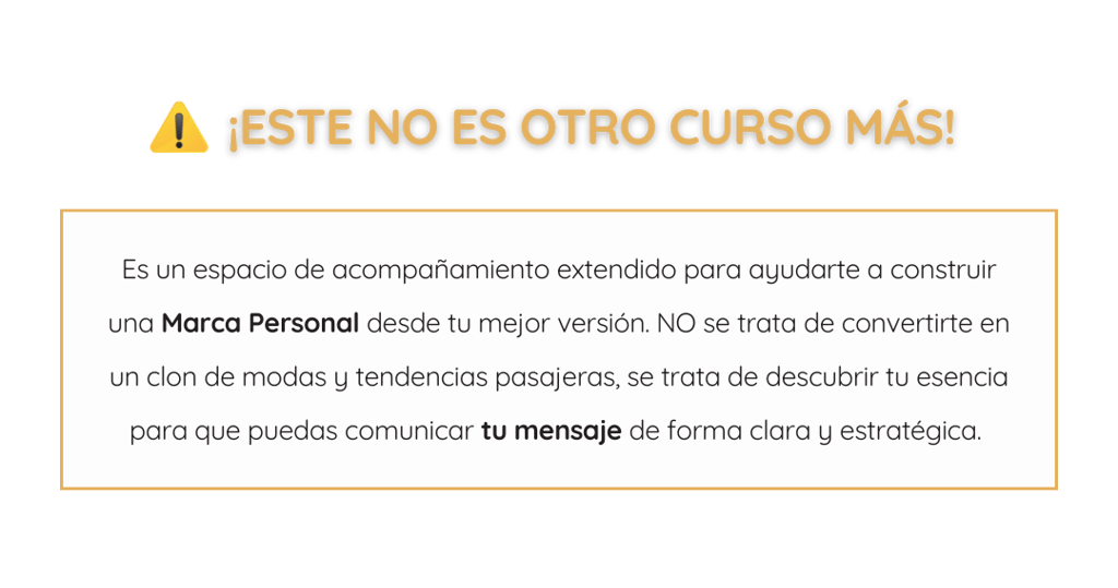Decidí reestructurar mi programa Destaca con tu Marca (mi programa de acompañamiento de 6 semanas) porque tras experimentar con grupos de personas descubrí que necesitan más tiempo y más acompañamiento para poder aplicar lo que aprenden y ver resultados reales. Porque construir una Marca Personal es una labor de todos los días.